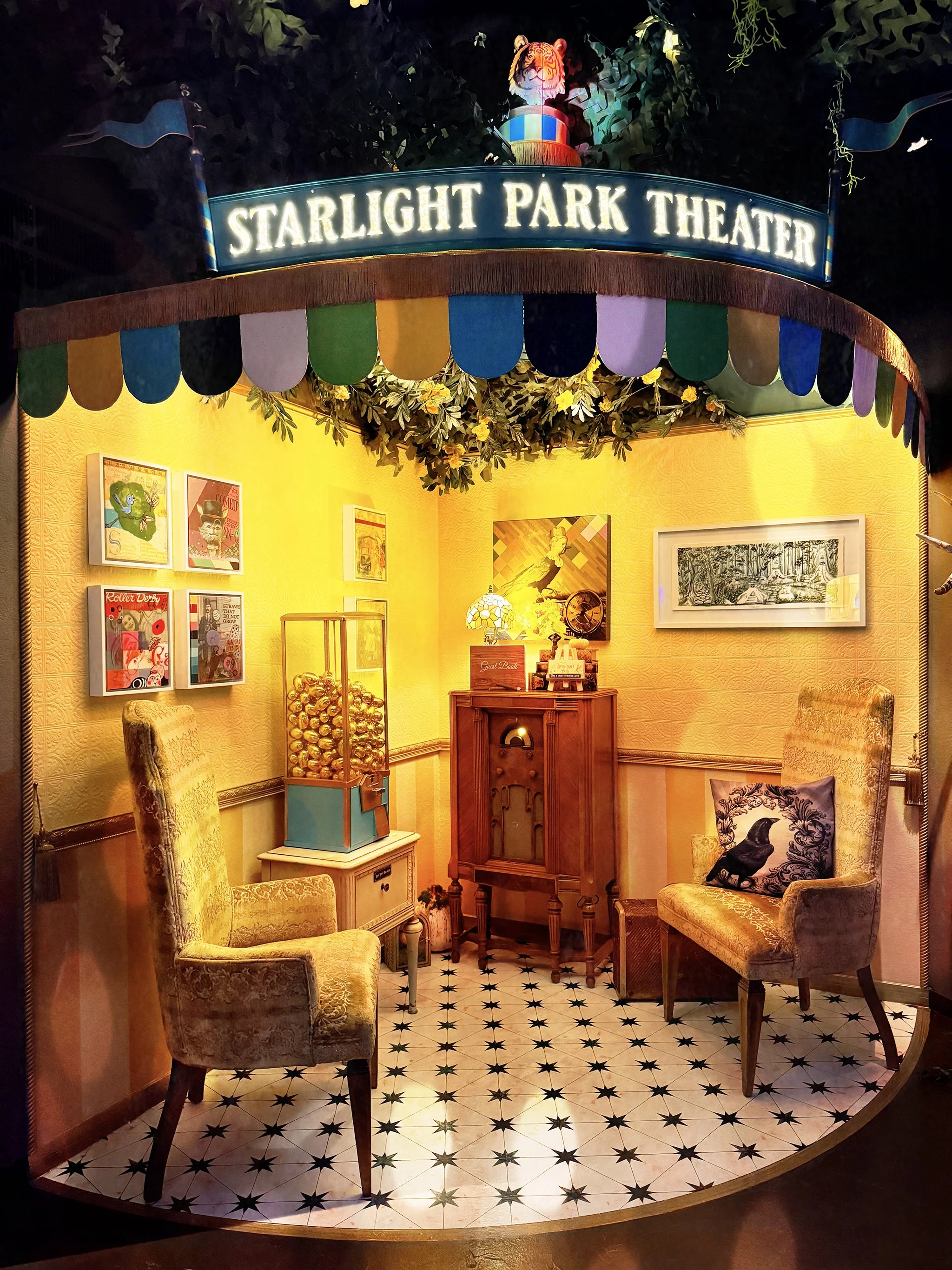 Even the moon in the back of the exhibit was a happy accident, born when their handyman tilted a round light on its side and said it looked like a moon. They ran with it. The hand-painted cobblestone path you walk through? That’s an original mural on the floor.