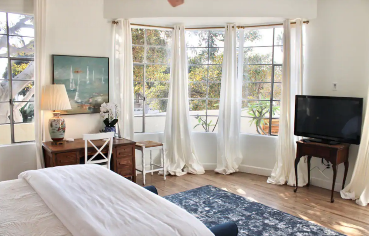 Within walking distance to the beach, this Downtown Laguna Beach Coastal Studio offers a lot of bang for your buck. Its serene white interior, blonde wood accents, and large windows evoke the breeziness of the nearby beach. The shared courtyard is the perfect place to dine alfresco and watch Laguna’s magical sunsets with a glass of wine.