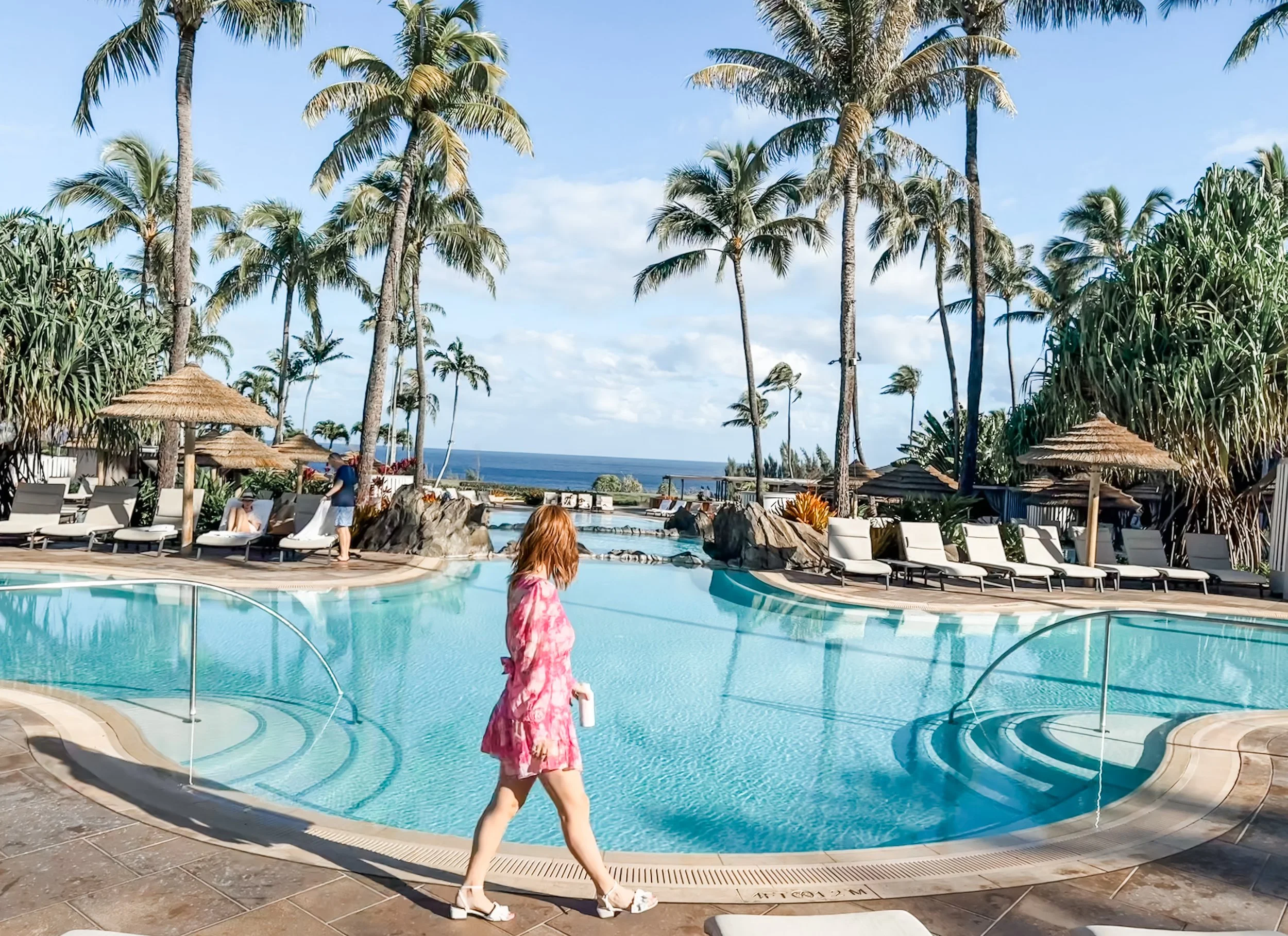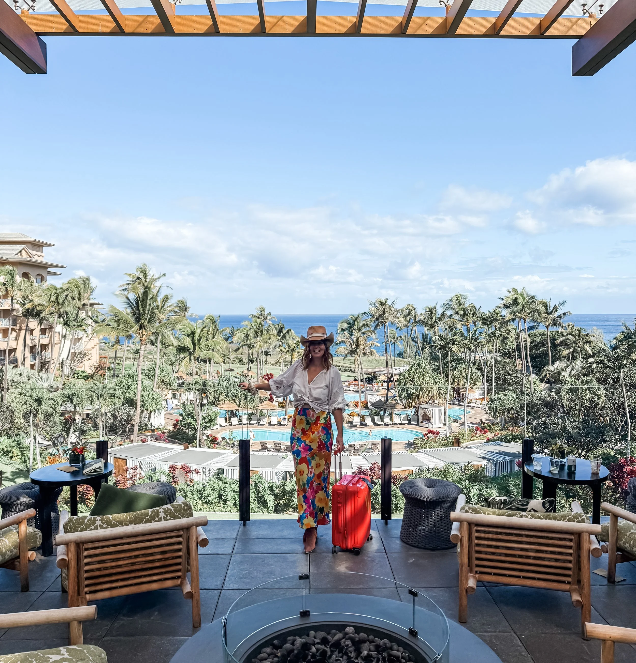 Pulling into The Ritz-Carlton, Kapalua, the shift was immediate. The lobby is beautiful — rich wood tones, open-air spaces, ocean views — and somehow feels both grand and calm at the same time. Check-in was effortless, we were greeted with Hawaiian leis, and valet handled the rest.